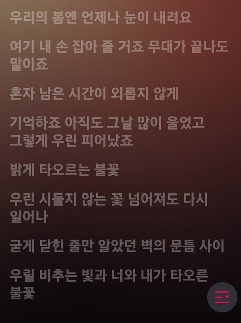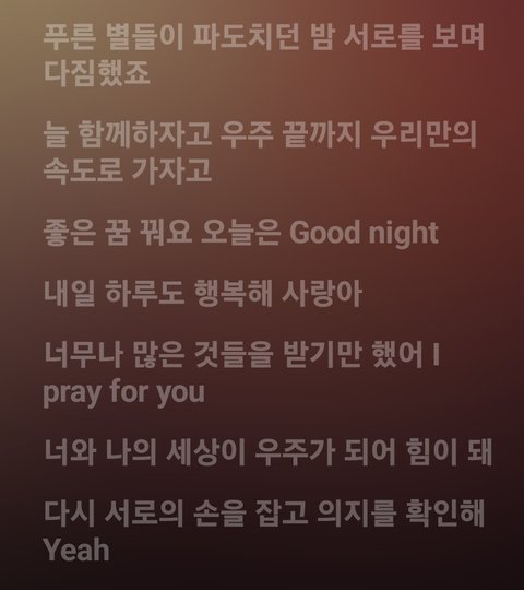 다시 하나하나 읽어보면 내가 유니버스일수밖에 없게 되는 가사야 언젠간 지금을 추억하면서 웃을 수 있는 날이 오길 다들 주말 잘 보내자♡
