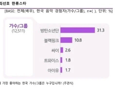 한류 실태 조사 Top5 가수의 소속사 - 방탄