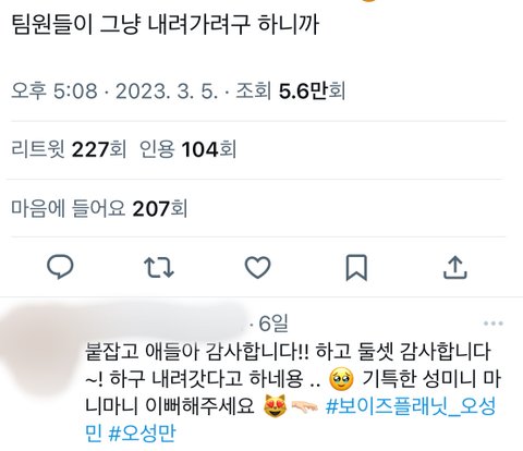ㄴ 이거 마저 통편집 당해서 팬들은 그냥 상승만 했다는 것만 앎