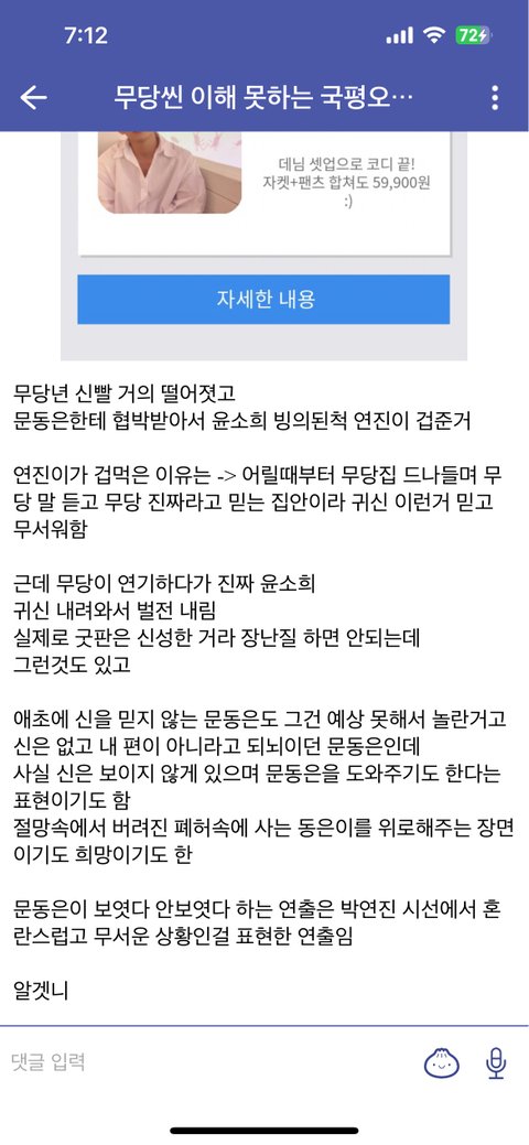드라마 과몰입해서 진지하게 쓰자면..그 무당이 신력이 없는건 아니었음. 신딸도 있을 정도 였으니까. 신력을 쌓고 유지하려면 기도터 꼬박꼬박 다니면서 지극정성으로 빌어야되는데 드라마 대사보면 기도하러간다는 말이 자주 나와. 이게 현실 무당의 보통 루트임. 근데 이 무당은 아무리 기도하러 다녀도 수십년째 나쁜짓만 해왔기때문에 신빨이 계속 떨어지기만 함. 그래서 죽은 사람 사주를 들이밀었는데도 몰라봐서 산사람 사주로 본거고. 장군님이었나 할아버지가 그러는데~식으로 말한게 이미 신빨 없다는 증거임. 진짜 무당은 우리 신령님이 말씀하셨는데~라고 안하거든. 그리고 죽은사람 사주 속여서 들고 오면 바로 불같이 화내면서 기분 나빠해. 벌전은 쉽게 말하면 천벌 받은건데 지킬거 안지키고, 하면 안되는짓. 예를 들면 산 사람 한테 살을 날린다든가. 사람을 제물로 쓴다던가..피해를 주는 행위..돈에 미친다든가..욕심부린다든가..그래서 모시던 신이 진짜 극대노를 해야 즉사..보통 벌전 받으면 몇년동안 죽기 직전 상태로 살아. 죽이지 않는건 새 몸주 찾으려면 또 신 나름대로 수백년 도 닦아야해서 퇴송굿 하지 않는 한 안떠나거든. 마지막에 윤소희를 본건 신이 벌전 내려서 죽이려고 씌인거임. 주변 사람들 막 도망갔는데 그 신딸도 나쁜짓에 기여했으니 실제라면 운좋으면 반병,신으로 한 10년 살듯.