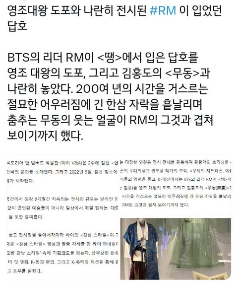 영국의 박물관에 남주니 옷 전시되어있대