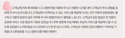 호텔 직원인지 모르겠는데 상황도 모르면서 이렇게 댓글 다는거 아니라고 생각해요.