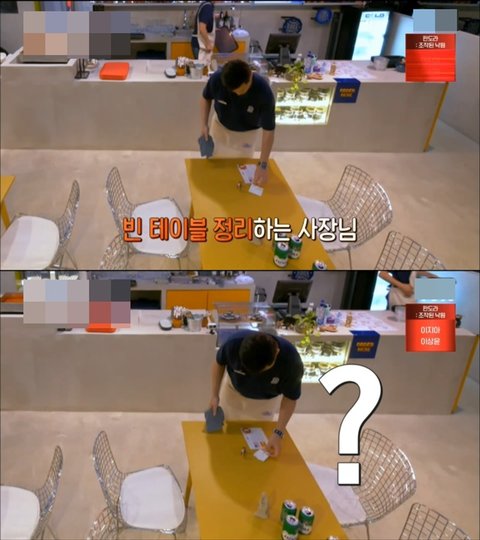 손님이 떠난 빈 테이블 정리 중