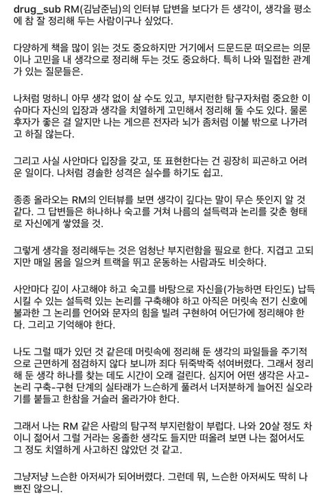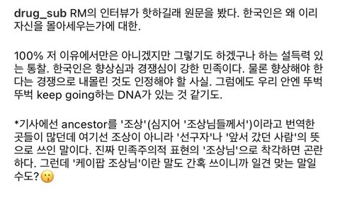 황석희 번역가님이 남준이 언급하신 거 봄?