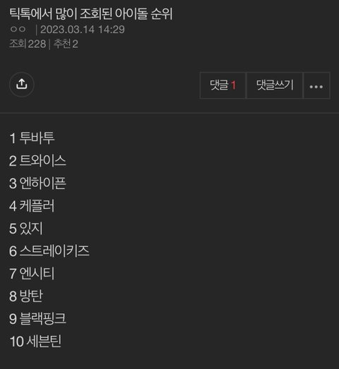 방탄 틱톡 순위도 망했네ㅋㅋㅋ