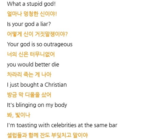 저도 개신교인이지만 가사 보고 충격 받았어요