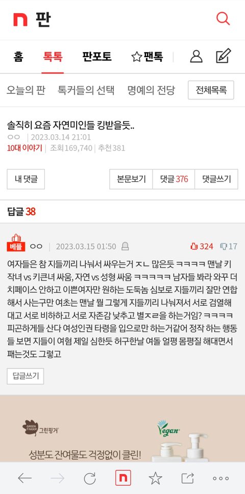 여자들은 참 지들끼리 나눠서 싸우는거 ㅈㄴ 많은듯 ㅋㅋㅋㅋ 맨날 키작녀 vs 키큰녀 싸움, 자연 vs 성형 싸움 ㅋㅋㅋㅋㅋ 남자들 봐라 와꾸 더치페이스 안하고 이쁜여자만 원하는 도둑놈 심보로 지들끼리 잘만 연합해서 사는구만 여초는 맨날 뭘 그렇게 지들끼리 나눠져서 서로 검열해대고 서로 비하하고 서로 자존감 낮추고 별ㅈㄹ을 하는거임? ㅋㅋㅋㅋ 피곤하게들 산다 여성인권 타령을 입으로만 하는거같어 정작 하는 행동들 보면 지들이 여혐 제일 심한듯 허구한날 여돌 얼평 몸평질 해대면서 패는것도 그렇고