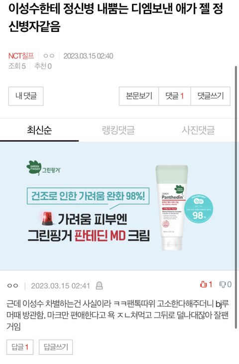 하다하다이성수한테 디엠보낸걸 "잘팼다"고 하는 댓글까지
