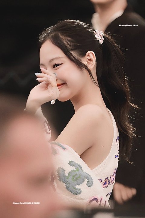기자 : 제니 씨! 인사 한 번만 해주세요!! (손인사 기대)