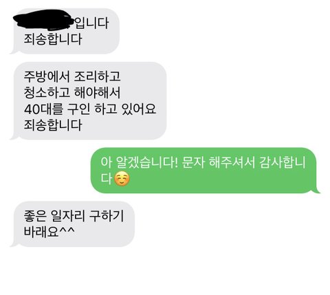 주방에서 청소하고 조리하고… 얼마나 궂은일일까 그래서 생계땜에 쉽게 그만두지 않는 40대 구하는거고. 식당 근무하는 어머니들 너무 고생함