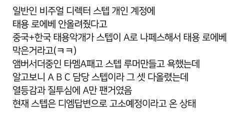 엔시티 해찬 태용 재현 재민 제노 마크 에스파 카리나 지젤 윈터 태연 엑소 백현 수호 카이 샤이니 태민 레드벨벳 뉴진스 방탄 투바투 스키즈 있지 트와이스 아이유 장원영 리즈
