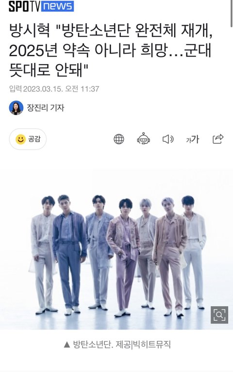 갑자기?ㅋㅋㅋ 방시혁이 나서서 뜬금없이 저러는거 보면 지금 재재계약이 지들 뜻대도 안되니까 팬덤 분열 일읔려는 걸로밖에 안보임ㅋㅋ 완전체 재개는 멤버들이 제일 바라는거임 그러니 호비도 남준이도 본인들 날짜보다 이르게 가는거고 최근 지민이가 단체 언급한것도 어제 정국이가 마지막에 한 말만 봐도 우린 그냥 방탄만 믿고 기다리면됨