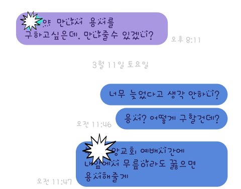 엄마아빠가 믿는 하나님은 용서를 구하지 않아도 시간이 지나면 용서해주는 분인가 봅니다.