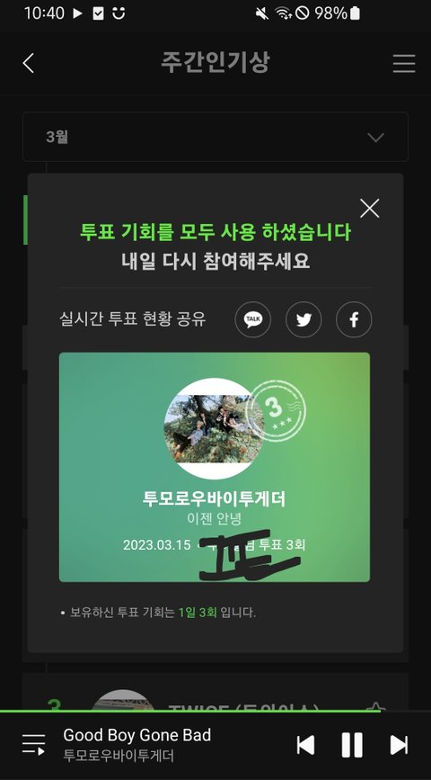 이젠안녕 70위대 일간 잘 유지하고 있네 음뫄쪽