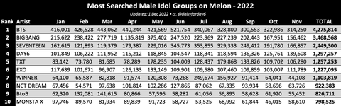 방탄소년단 빅뱅 세븐틴 데이식스 투바투 엑소 위너 엔시티 엔드림 비투비 몬스타엑스