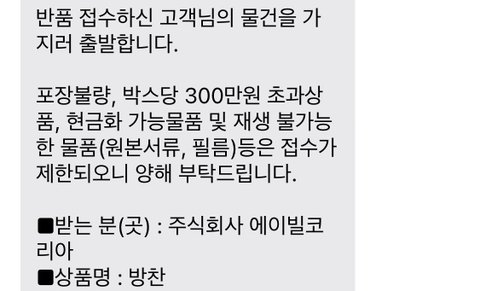반품 접수하셨죠? 방찬 이라고.. 가지러 갈게요