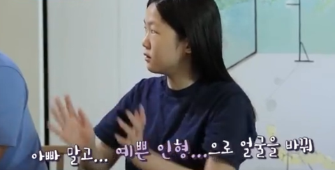 아빠 말고 예쁜 인형으로 해보라고 하는 혜이