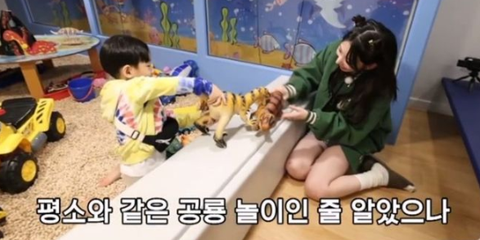 사쿠라는 공룡 인형으로 아이와 잘 놀아주는데...