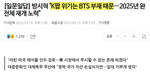무슨 K팝에 BTS가 90퍼쯤은 되는 것 마냥 말해놨네.
