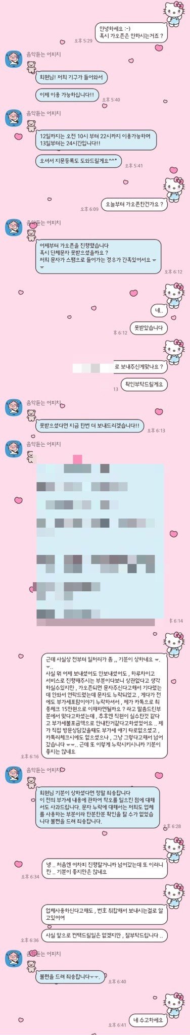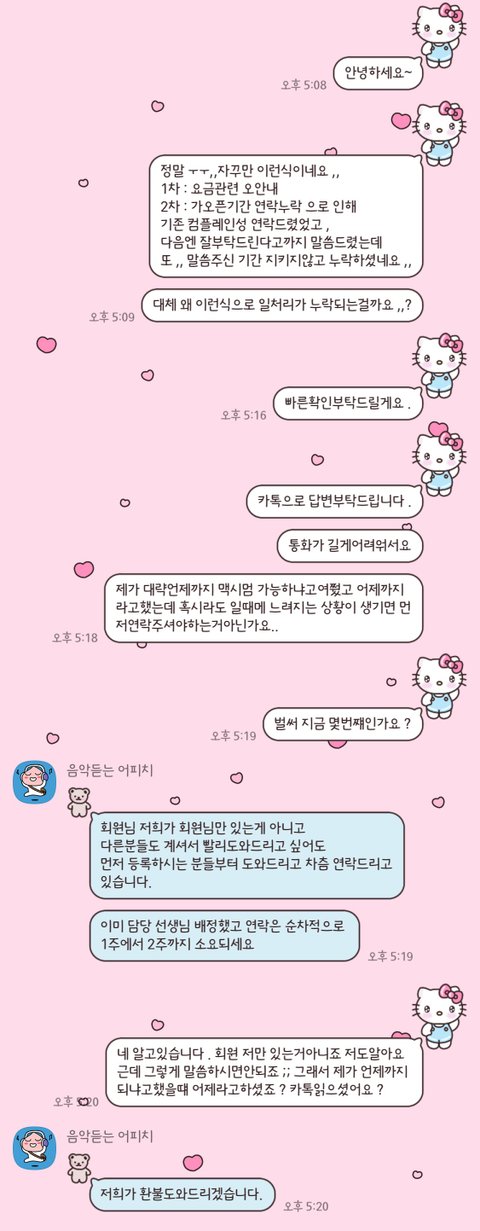 저 카톡들 외에 단 한번의 컴플레인통화를 나눈적이없으며