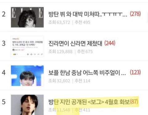 지민은 방탄중 화제성이 엄청 떨어지는듯