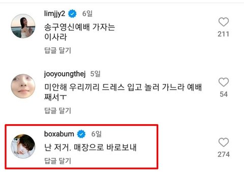 시청자들만큼 <더 글로리>에 과몰입 중이다. 출연 배우들의 SNS에 '혹시..아끼는거 뺏겨본 적있어요?', '난 저거. 매장으로 바로보내'라는 등의 댓글을 남겼으며 ‘하도영’ 얼굴은 깨알같이 모자이크 처리했다.
