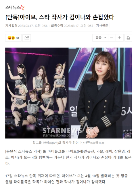 와 아이브 컴백 김이나 작사가가님이네 ㅠㅠ