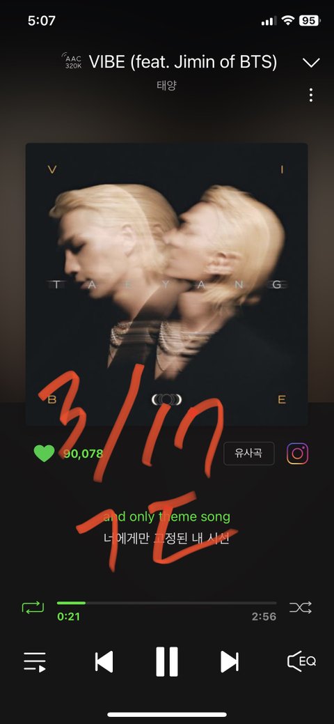 근데 피처링곡들 계속 오르는거 아깝다