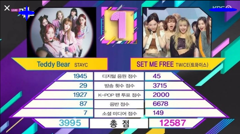 뮤뱅 에서 트와이스가 큰 점수 차이로 스테이씨 꺾고 1위 함