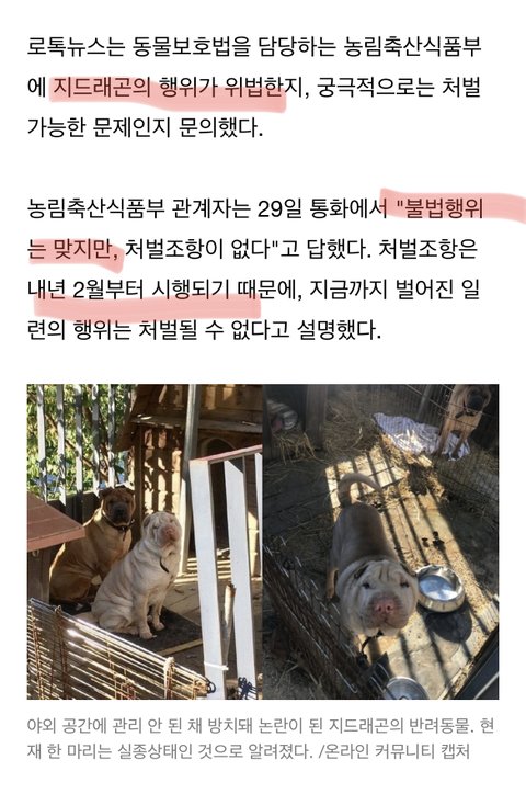 2019년으로 가져온거는 강아지 기사나고 눈치봐서 대처했을 수도 있다고 우길까봐 일부로 기사 나기 전 내용으로 가져옴