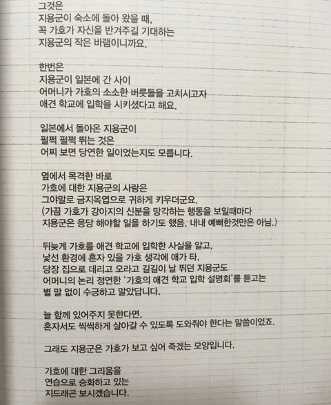 그리고 가호가 펜션에 가게 된 이유는 지디 아버지께서 인터뷰 하심