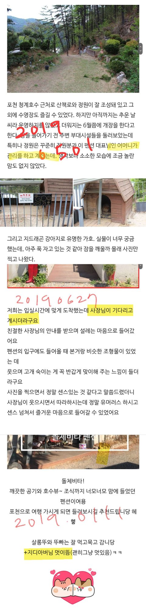 근데 펜션 후기만봐도(본인이 직접 블로그 하나씩 캡쳐함)