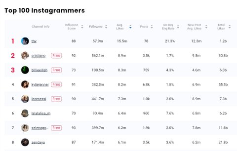 인플루언서 마케팅 소프트웨어 플랫폼 '소셜북' (SocialBook)’ 뷔의 인스타그램 평균 ‘좋아요’ 수는 1550만개로 리사의 인스타그램 평균 ‘좋아요’ 수는 640만개로.