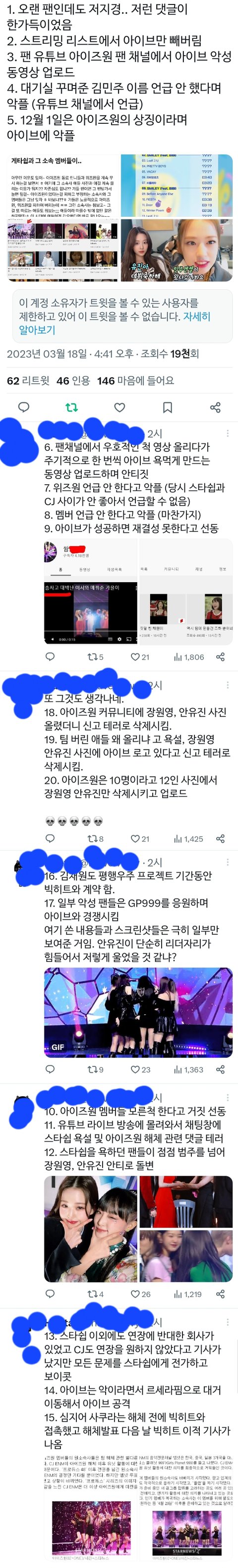와 진짜 일부 위즈원들 개너무하네...안녕즈 배척하는 정도가 아니라 걍 안녕즈 안티들이네 난 이정도인줄은 몰랐어서 충격먹음