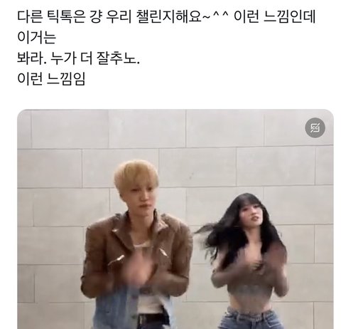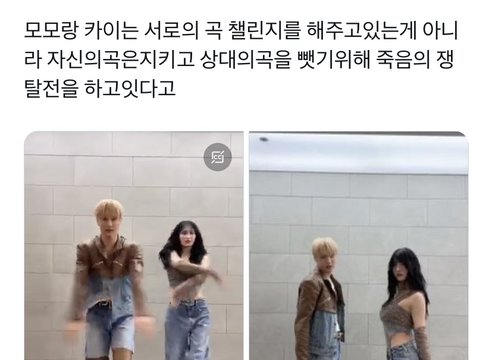 실은 유닛으로 오해할정도의 챌린지 때문에 지금 난리났음 ㅋㅋㅋ jyp 간판 댄서 모모와 sm 간판 댄서 카이 댄스 배틀에 영상 안끝남 ㅋ 엑소와 트와이스가 챌린지를 한다니 5년전에 이말했으면 누가 믿어 ㅎ