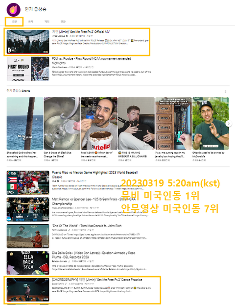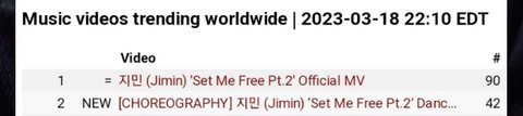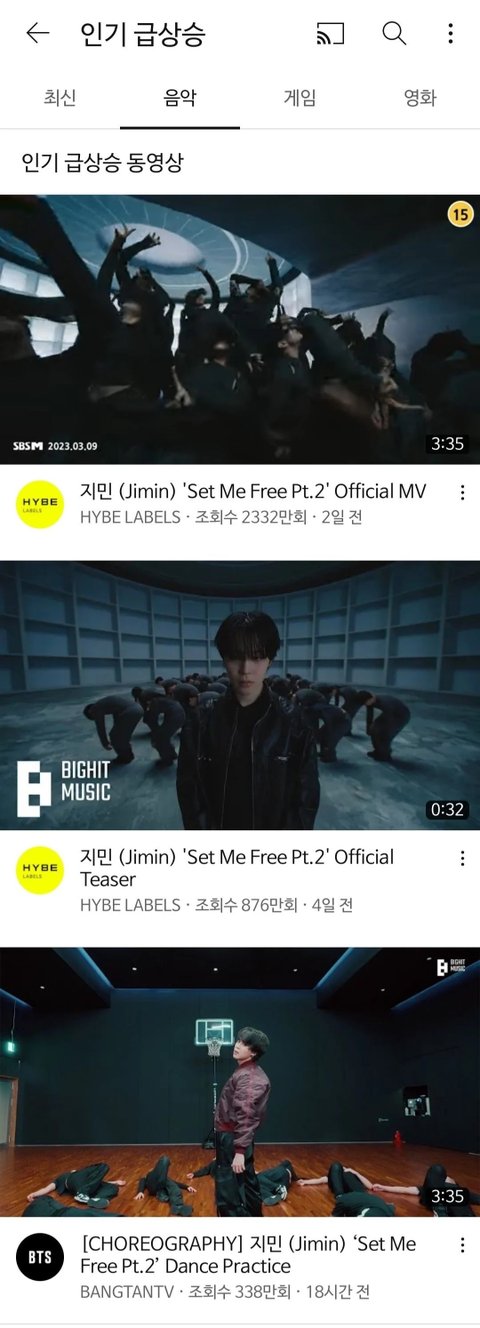 지금 월와 1,2위 다 하고 있음 지민이 뮤비 안무영상 다 개쩔