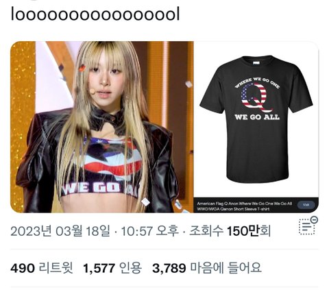 트럼프 지지자 옷 입은 트와이스 채영 컨텐츠들 다 내려가는 중