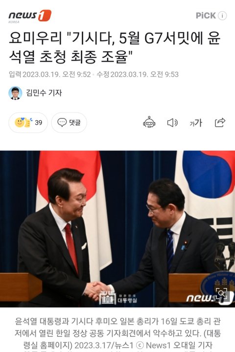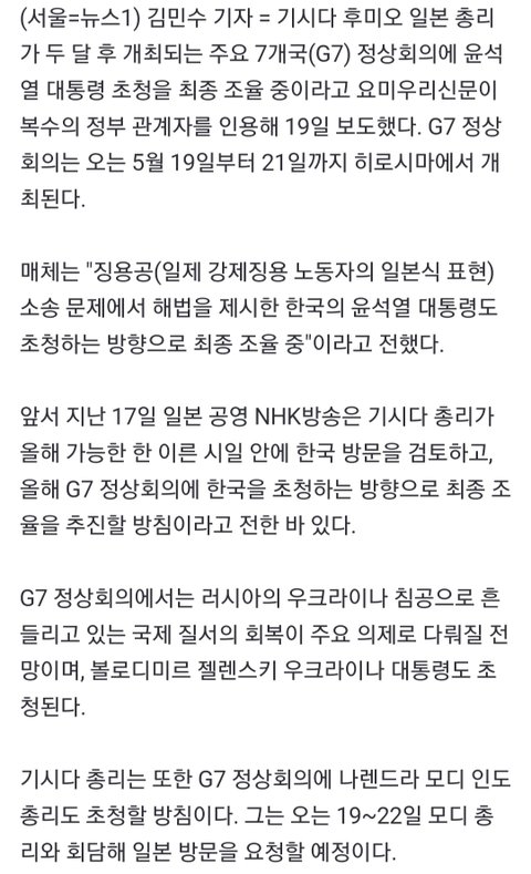 요미우리,기시다 日 총리 G7서밋에 윤석열대통령 초청최종 조율중!
