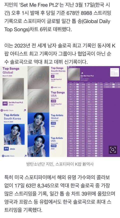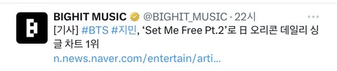 방탄 지민 솔로곡 set me free pt.2 17일에 나왔는데