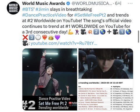 유튭은 월드와이드 트랜딩 1위 3일째 유지중에 2위도 안무영상으로 올라옴ㅋㅋㅋ