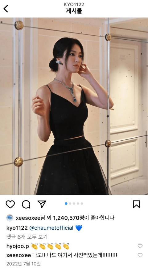(송혜교 인스타는 송혜교가 팔로한 사람만 댓글 달 수 있게 해놓음)