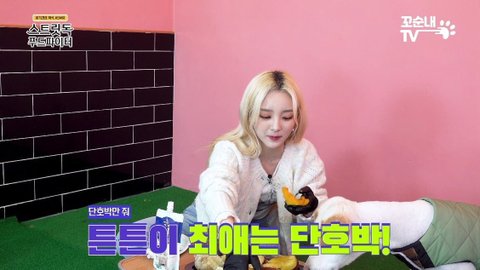 단호박 주니까 제일 잘 먹음 허겁지겁 맛있게 먹는 중