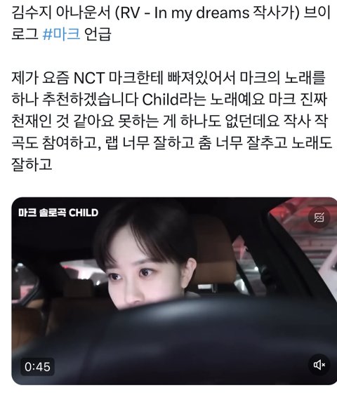 아나운서님이 요즘 마크한테 빠졌대! 차일드 노래 틀고 운전하심ㅋㅋㅋ