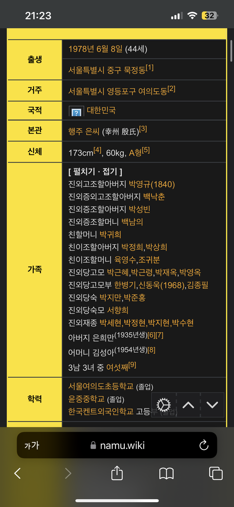 릴스에 은지원 뜨길래 나무위키 검색해봤는데 가족관계 너무 자세해서 개놀람