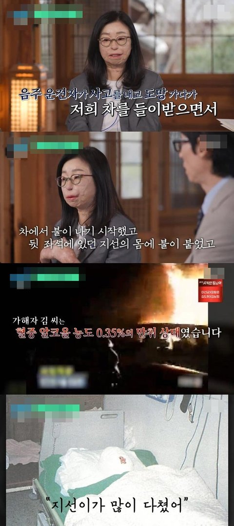 그 불이 본인 몸에 먼저 붙었고, 같이 있던 오빠가 본인을 차에서 꺼내다가 오빠도 화상을 입었다고