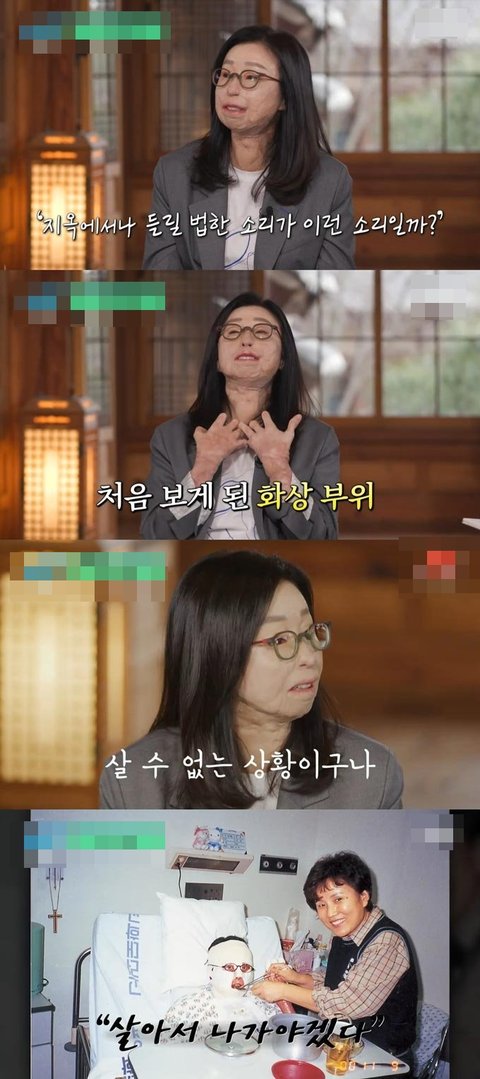 "드디어 첫 수술을 받으면 보통 나아지지 않나. 그런데 상한 피부를 걷어내니 더 고통이 살아나 통증이 어마어마했다. 피부가 없는 상태가 되니까. 또 감염을 막아야 하니 계속 소독을 받아야 했다. 그래서 '지옥에서나 들릴 법한 소리가 이런 소리일까' 그랬다. 그런 시간을 보냈다"고 전함 ㅠ ㅠ