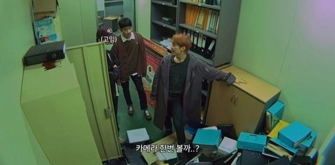 열쇠를 찾다가 원우가 얘기한 똑같은 곳을 한참 쳐다보다가 인사까지 하고 나감