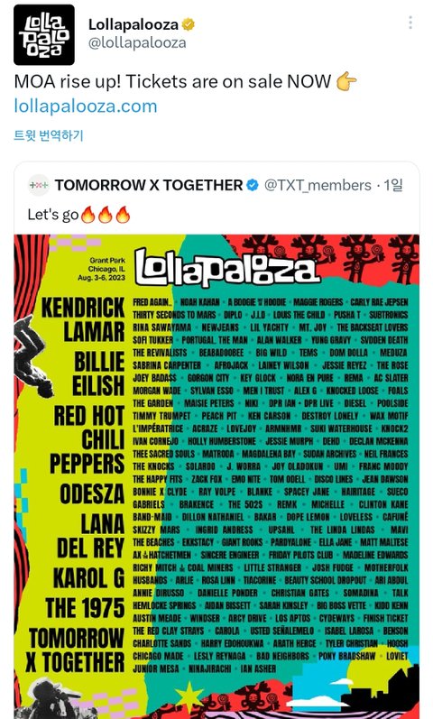 모아 일어나 예매중! 이라는 롤라팔루자 공계의 글 ㅎㅎㅎ달다 팬덤명까지 콕 찝어 언급해주는 폼 미쳤죠