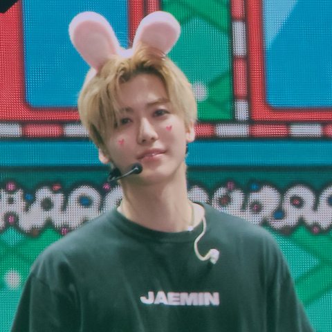 토끼귀 머리띠에 볼 하트 스티커 붙이셨습니다 셀카 기다리겠습니다