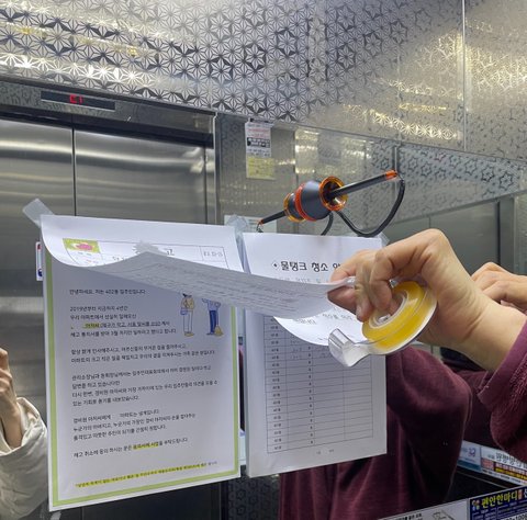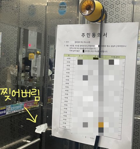 덧대어진 게시물도 ‘이미’ 주민게시판에 부착 되어 있음에도 불구하고